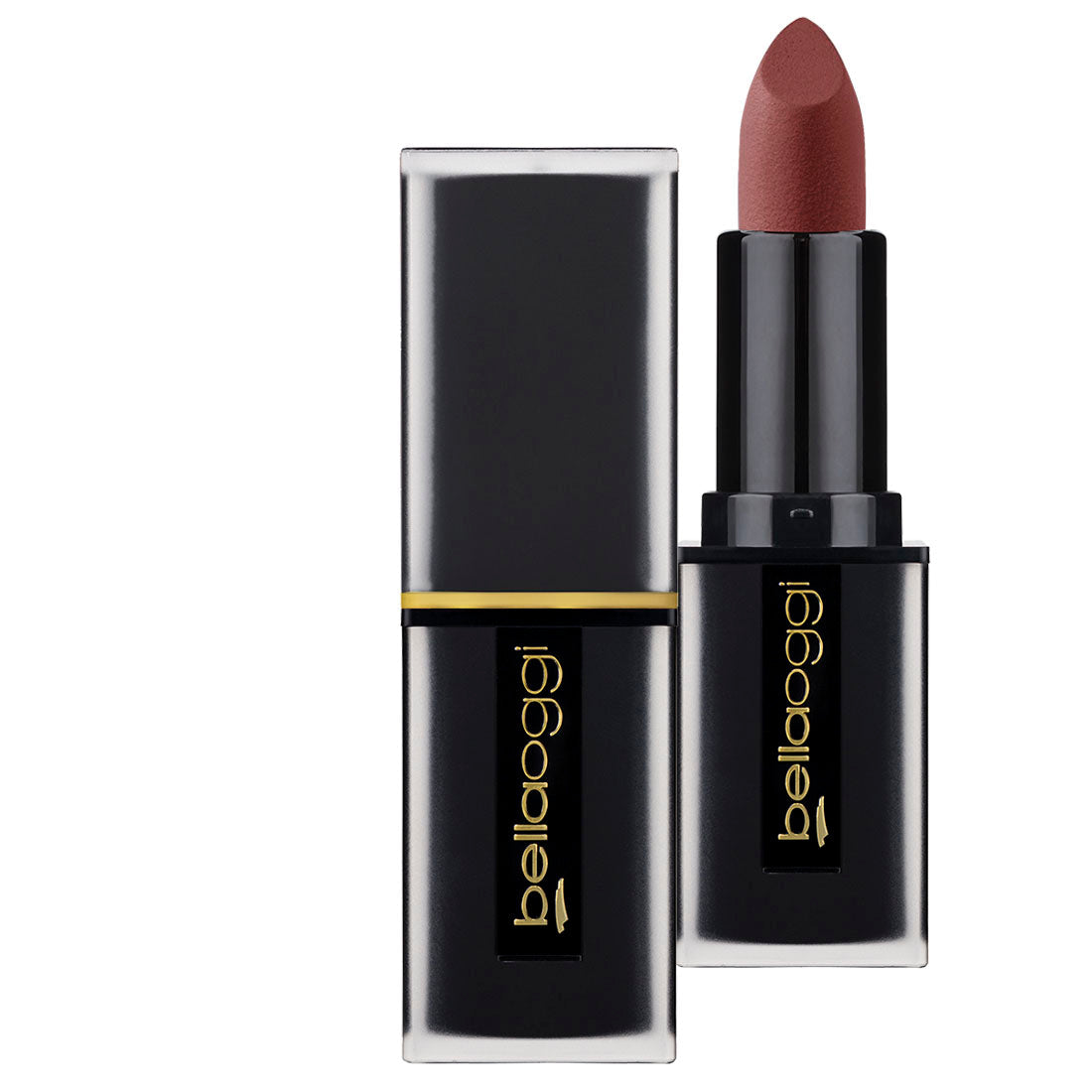 KISS AFFAIR, l’icona make-up di bellaoggi, si reinventa diventando un vero e proprio accessorio di bellezza. L’astuccio nero opaco incontra il logo bellaoggi fondendosi in una ricca e sofisticata placca in metallo dorato, diventando un oggetto di design senza tempo dalla silhouette elegante e contemporanea, da portare sempre con sé. Il nuovo rossetto KISS AFFAIR MATTE, dal finish opaco e dal colore intenso, non secca le labbra, assicura un comfort straordinario e un’idratazione fino ad 8h dall’applicazione. La mina è stata studiata per definire in modo impeccabile la forma delle labbra. La sua formula opaca, con un innovativo agente mattyfing di origine naturale con effetto soft focus assicura morbidezza e finitura opaca naturale e regala alle labbra un colore impeccabile ad alta definizione e lunga durata. La formula con un pool di principi attivi dona un effetto nutriente ed emolliente.