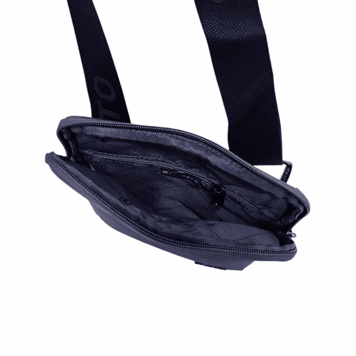 Realizzato in poliestere, fodera in poliestere, dispone di apertura con zip, tracolla regolabile altezza max 95, 1 tasca anteriore con zip, 1 tasca posteriore senza zip, 1 taschino interno con zip.