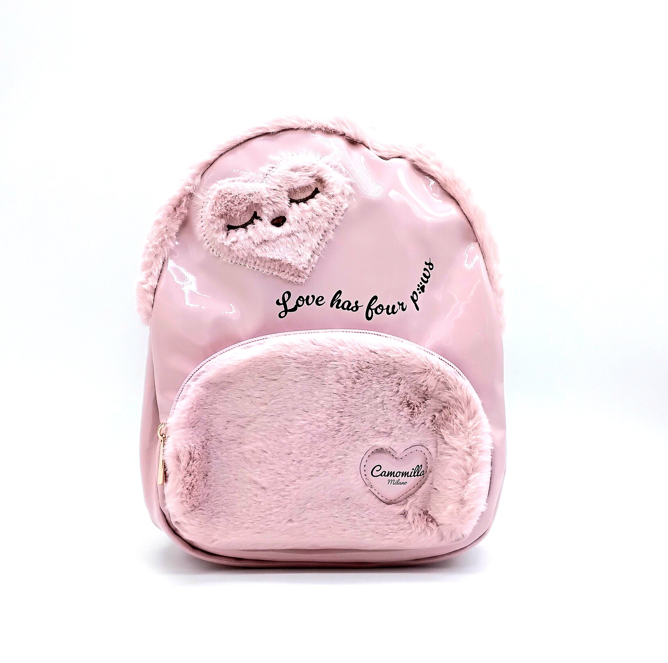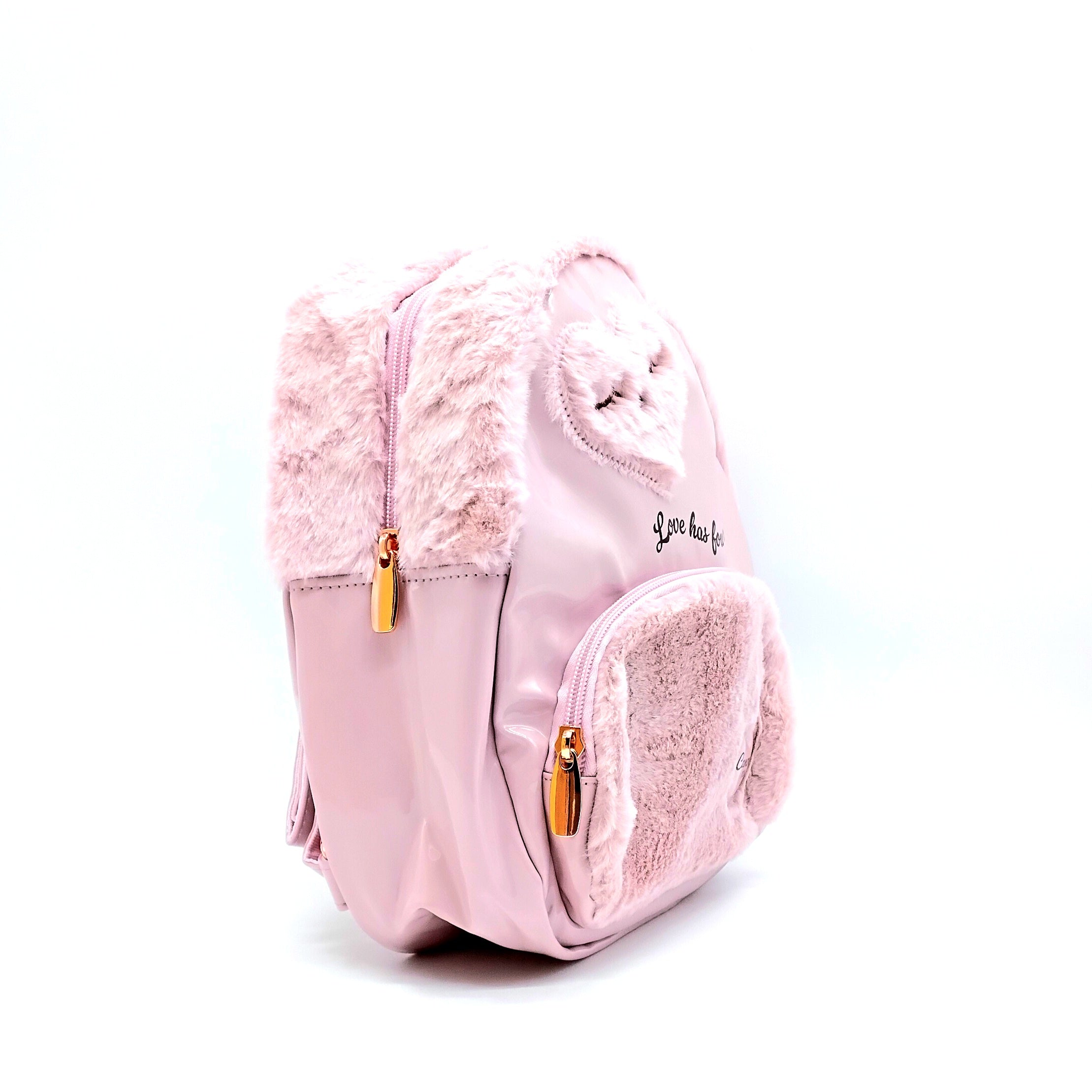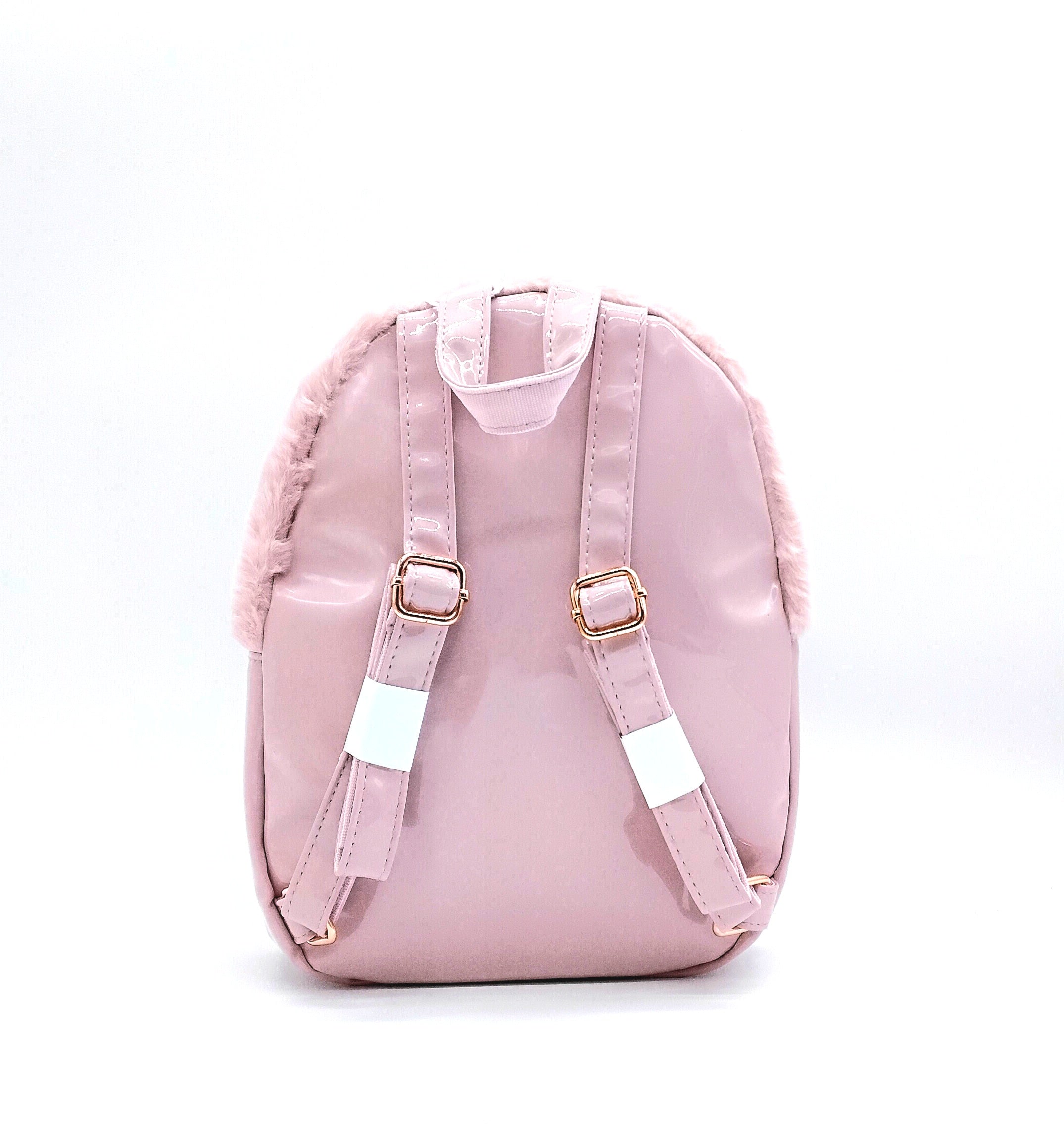 Zaino Grande per bambine con dettagli peluche. Colore rosa.