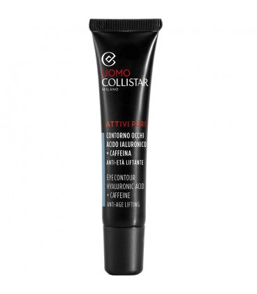Da Collistar Clean Research®, un trattamento per il contorno occhi che contiene selezionati principi attivi dermoaffini fondamentali per la salute della pelle, proposti in forma pura e concentrazione ottimale per garantire massima efficacia, azione mirata, elevata sicurezza. Specifica per l'uomo, la texture è confortevole, ricca ma non grassa e di facile assorbimento. L'Acido Ialuronico in 4 pesi molecolari agisce sui diversi strati cutanei assicurando un'idratazione intensa e multi-livello e un effetto lifting immediato. La Caffeina, dall'azione drenante sul ristagno dei liquidi, attenua borse, gonfiori e segni di stanchezza. L'Escina, favorisce la microcircolazione cutanea, riducendo le occhiaie e le antiestetiche ombre scure sotto gli occhi. Il Collagene Vegetale garantisce un'intensa azione elasticizzante, ricompattante e antirughe.