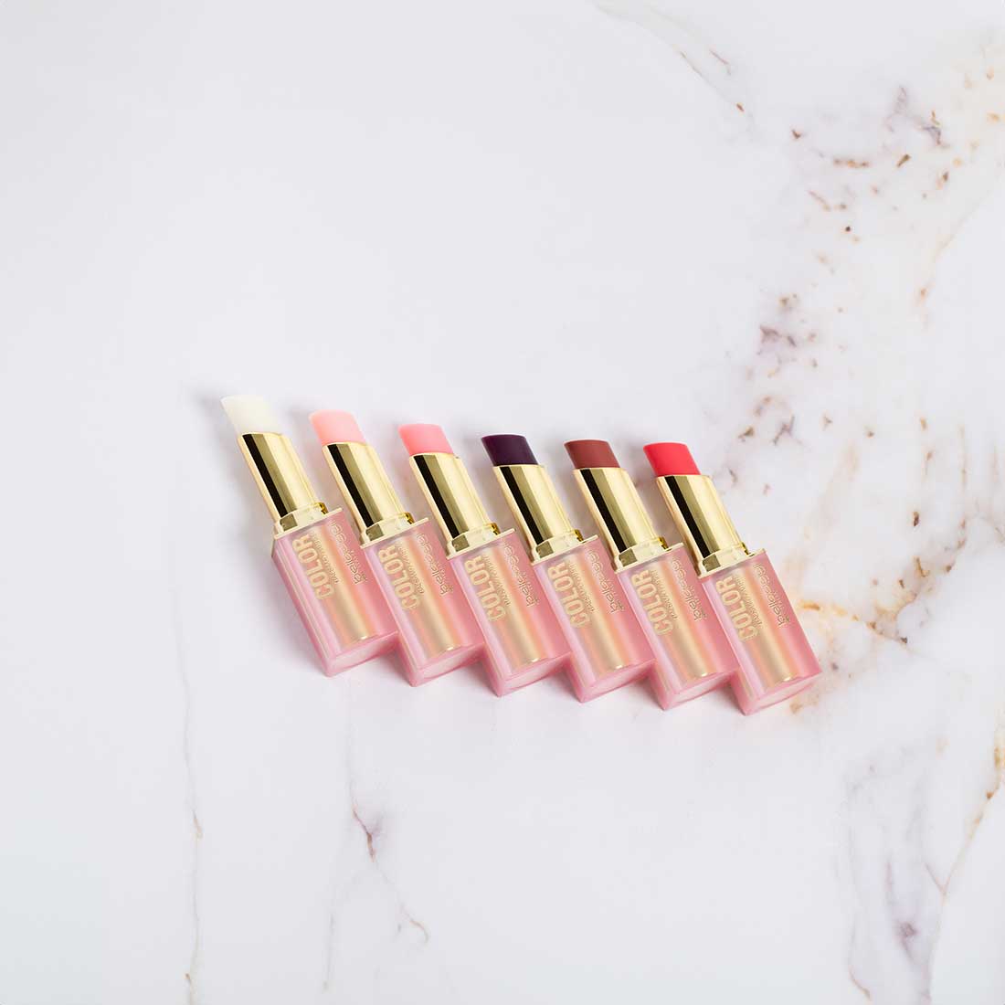 Tutta la collezione contiene l'attivo a PH reagente che a contatto con le labbra rivela il tuo colore unico e inimitabile.