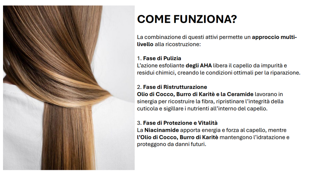 • AHA (Acido Maleico e Acido Citrico) – Ripara la fibra e dona elasticitÃ