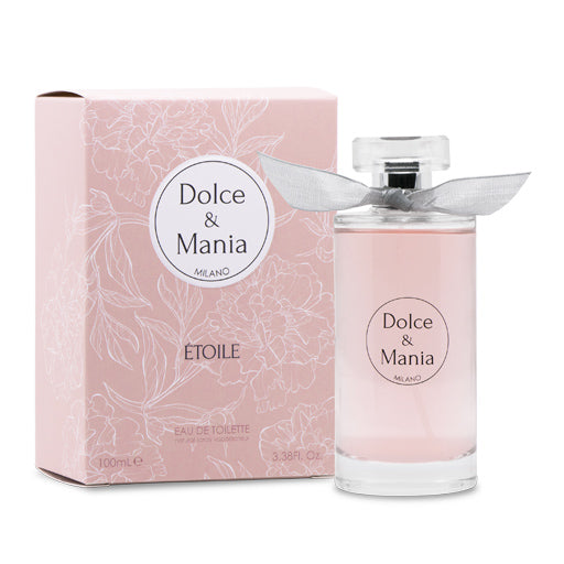 FRAGRANZA: Le fiorite note di testa di Dolce e Mania Etoile Eau de Toilette suonano come le note sul pentagramma, creando una melodia profumata e raffinata che si sposta sulle tonalità dolcissime del cuore per toccare le classiche note poudre: dolcezza di movimenti sulla linea di un balletto fiorito.