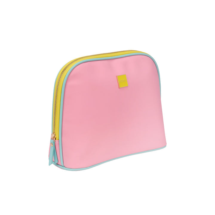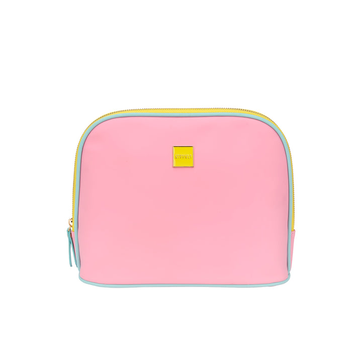 La targhetta metallica smaltata con logo conferisce un dettaglio sofisticato, sottolineando l’esclusività del design. Leggera e compatta, la busta grande “Peony” è ideale per trasportare trucchi, documenti o piccoli accessori, adattandosi perfettamente alla tua borsa o valigia.