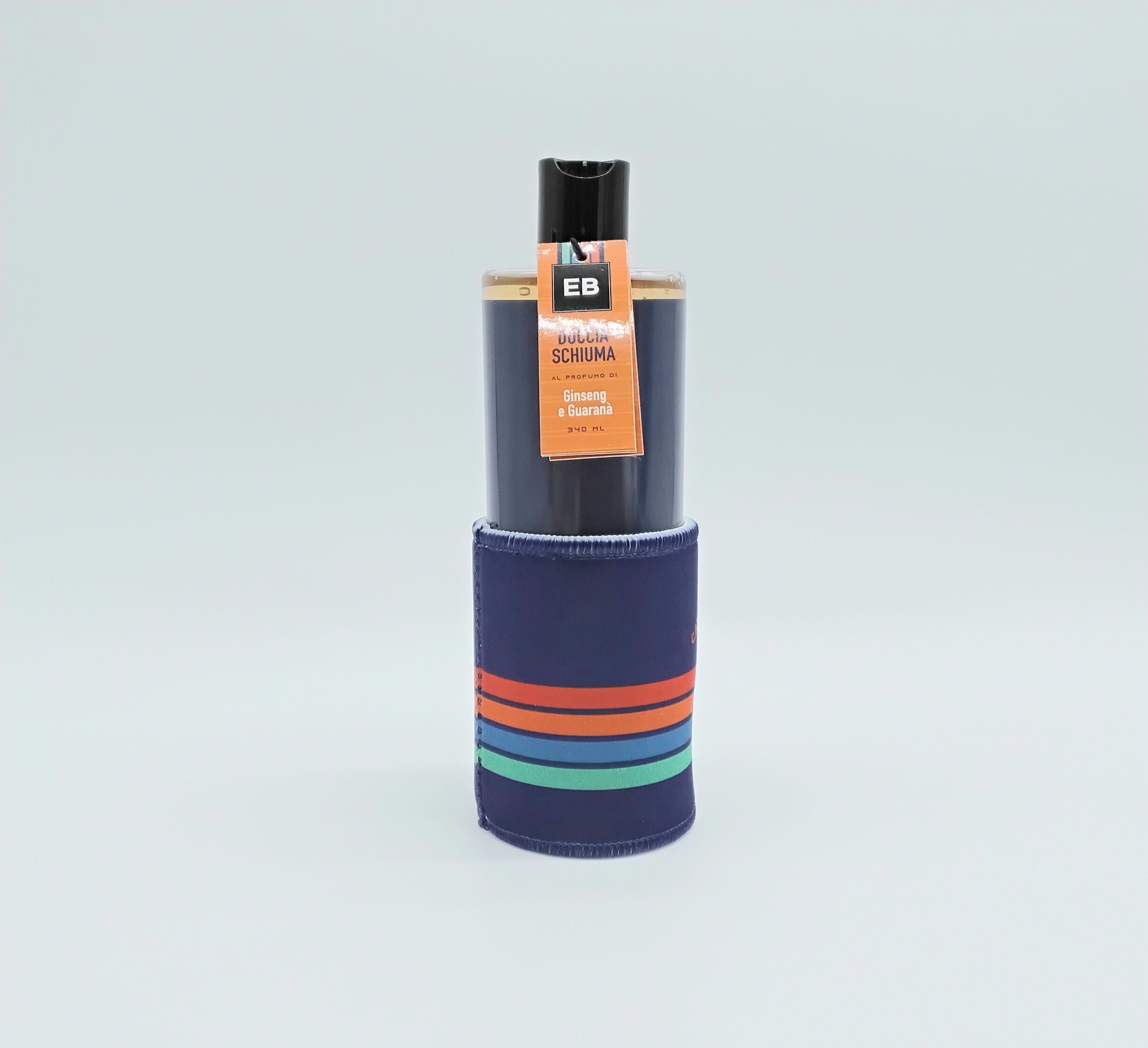 Doccia schiuma di Emanuela Biffoli con porta bottiglia incluso in poliestere. Lasciati avvolgere dalle note marine e del muschio e dalle note del ginseng e del guaranà. Adatto anche agli uomini. Formato: 340ml.