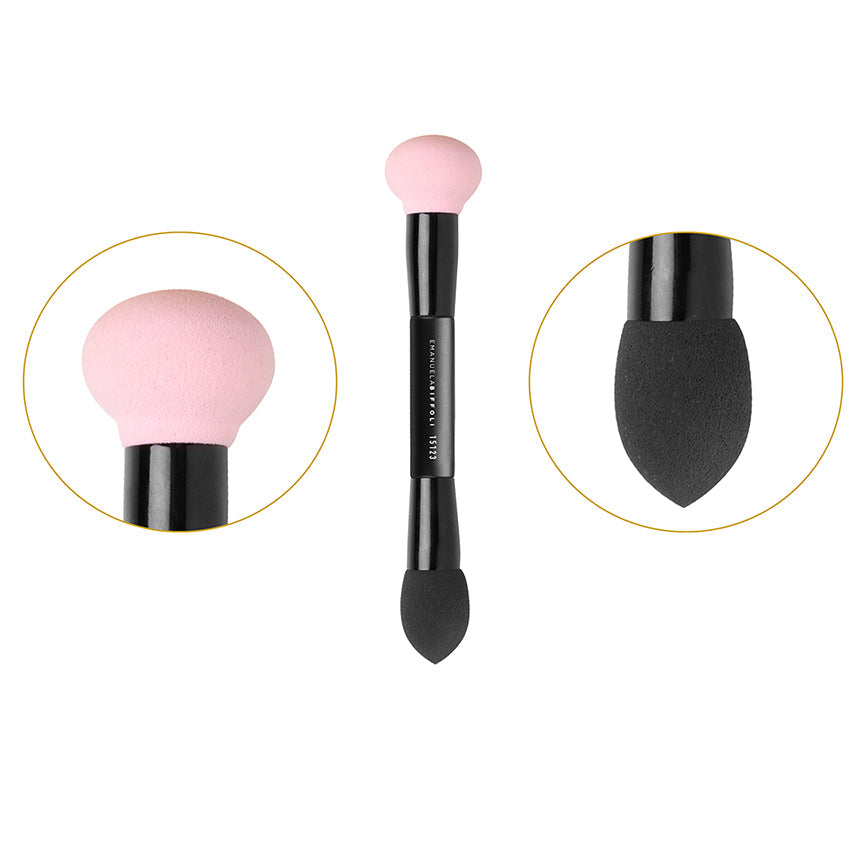 Scopri il nostro pennello con doppio lato in spugna, ideale per un'applicazione precisa e versatile del fondotinta e altri prodotti per il viso. Il lato in spugna rosa, tondeggiante, è perfetto per le aree più estese del viso, mentre l'altro lato in spugna nera, con punta, è ideale per la zona degli occhi e i contorni del naso.