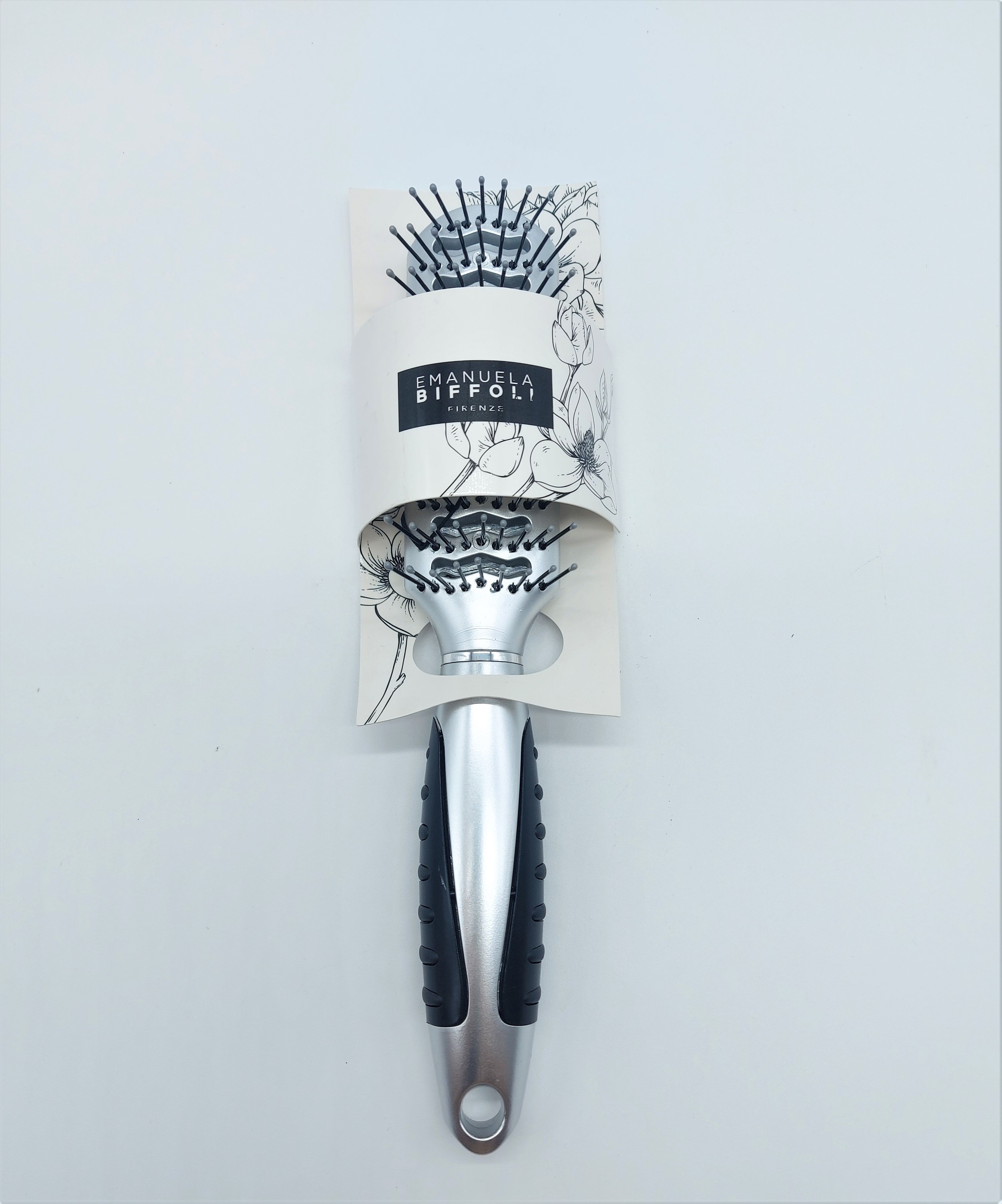 Spazzola adatta a capelli di corta e media lunghezza. la forma forata è perfetta per dare più volume ai vostri capelli e accorciare i tempi di asciugatura. Le sfere protettive all'estremità della dentatura garantiscono una maggiore protezione della cute. Materiali: ABS, TPR