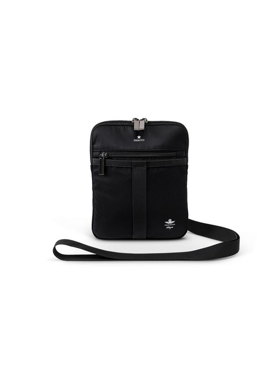 Il Borsello Nero della linea G Force slim firmato Esercito, e' un pratico body bag da uomo in nylon vela e ispirati alla Brigata Folgore, con logo frontale stampato, dotato di una robusta tracolla regolabile su diverse misure.Ben organizzato internamente, sul fronte e' presente una tasca con zip e una con calamita,sul retro una tasca piatta con zip.