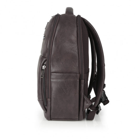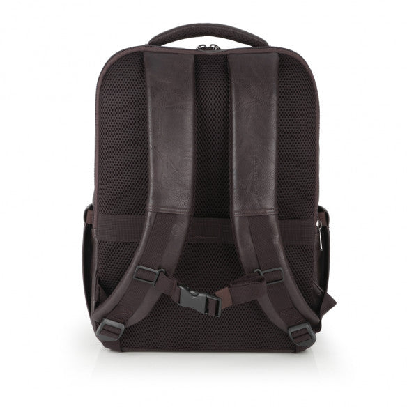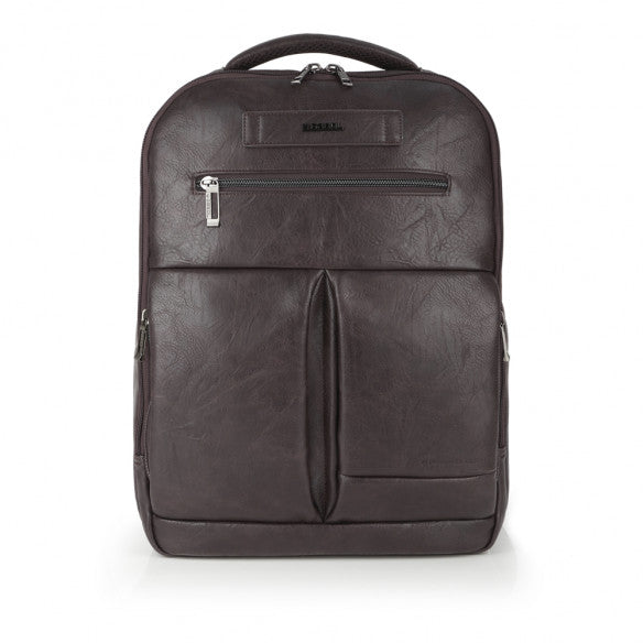 Zaino per laptop "15,6" in pelle sintetica, marrone, con classificatore, organizer, con due scomparti e con attacco per valigia. Include fodera imbottita di alta qualità e organizer per laptop. Realizzato con materiale PVC privo di plastica.