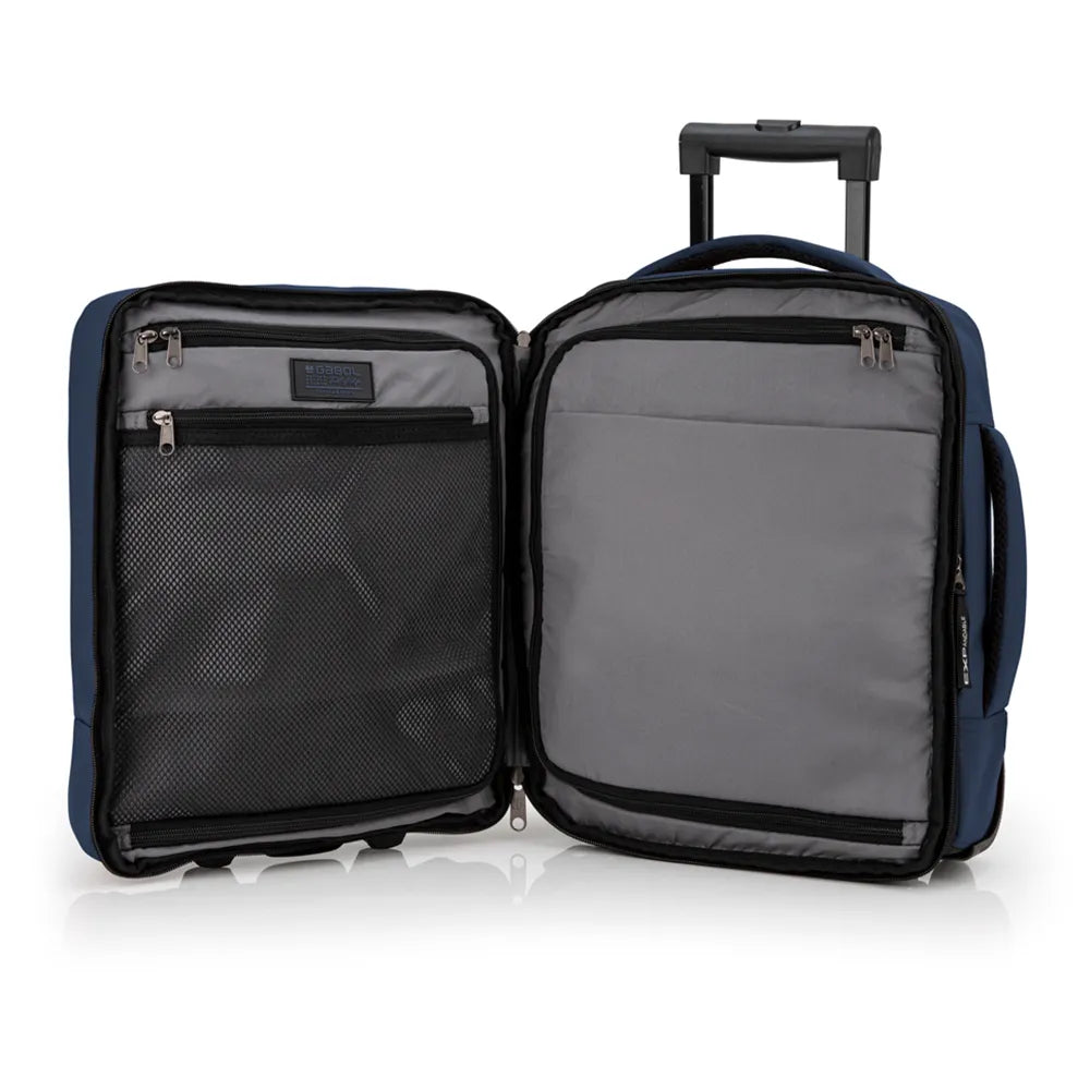 Questo zaino è una soluzione pratica per chi cerca la flessibilità di scegliere tra il trasporto a mano/spalla e il trascinamento su ruote.
