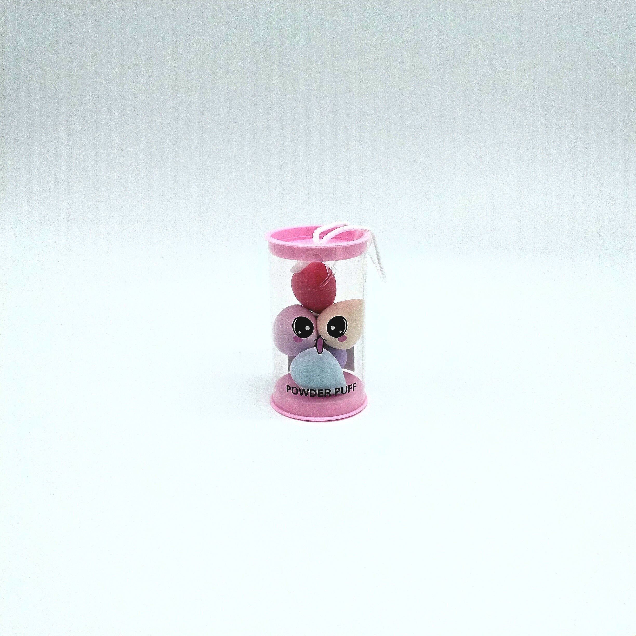 Scatolo con piccole spugnette per il trucco diversi colori.
