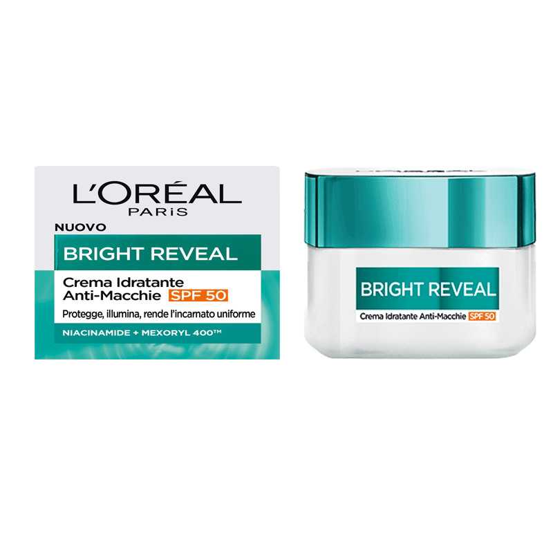 Nuova Crema Idratante Anti-Macchie L'Oréal Paris con Niacinamide e Filtro UV brevettato Mexoryl 400TM. Protegge, illumina e rende l'incarnato uniforme. Scopri l'azione idratante e protettiva della nuova Crema Idratante Anti-Macchie Bright Reveal con SPF 50 di L'Oréal Paris!