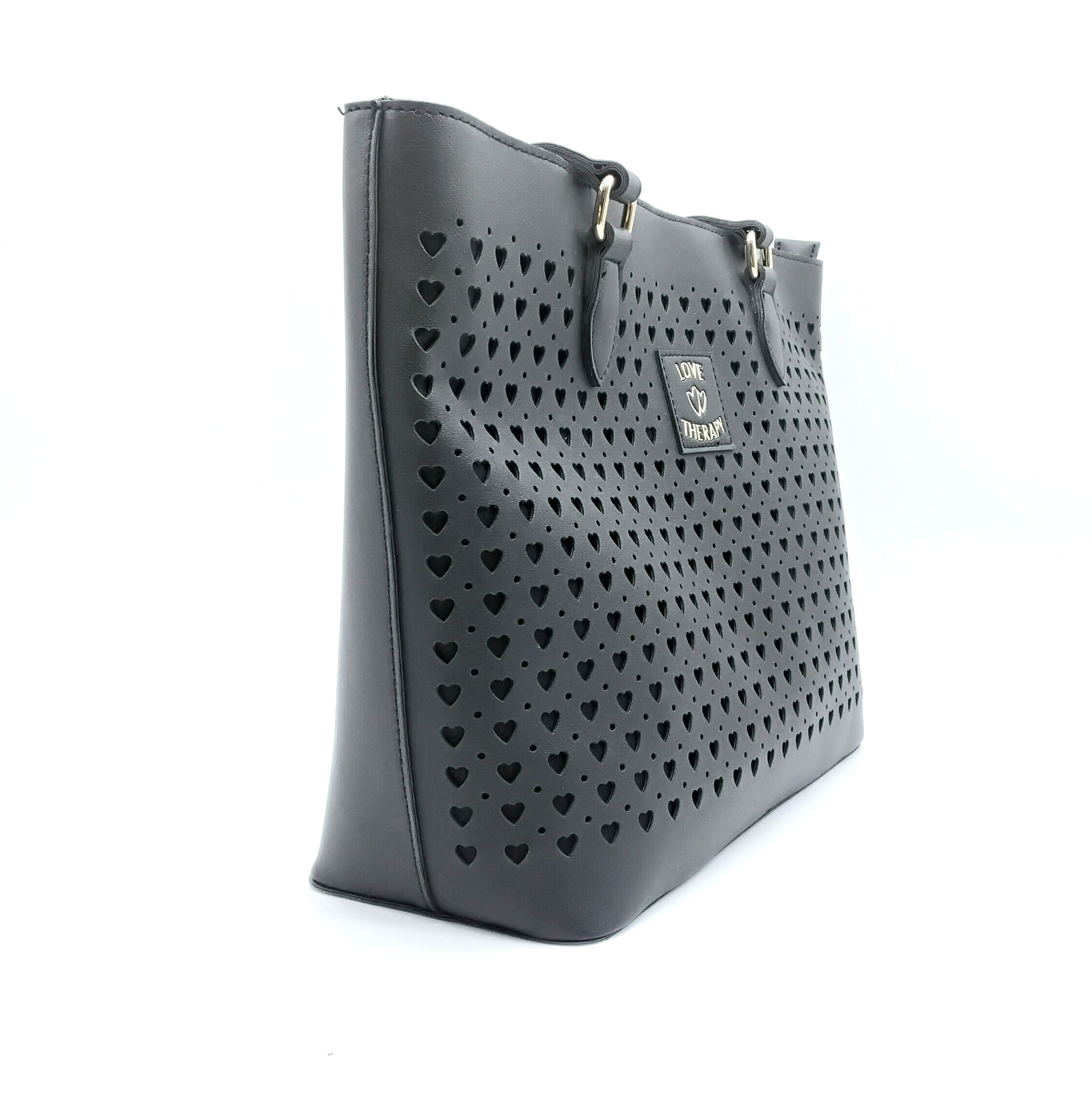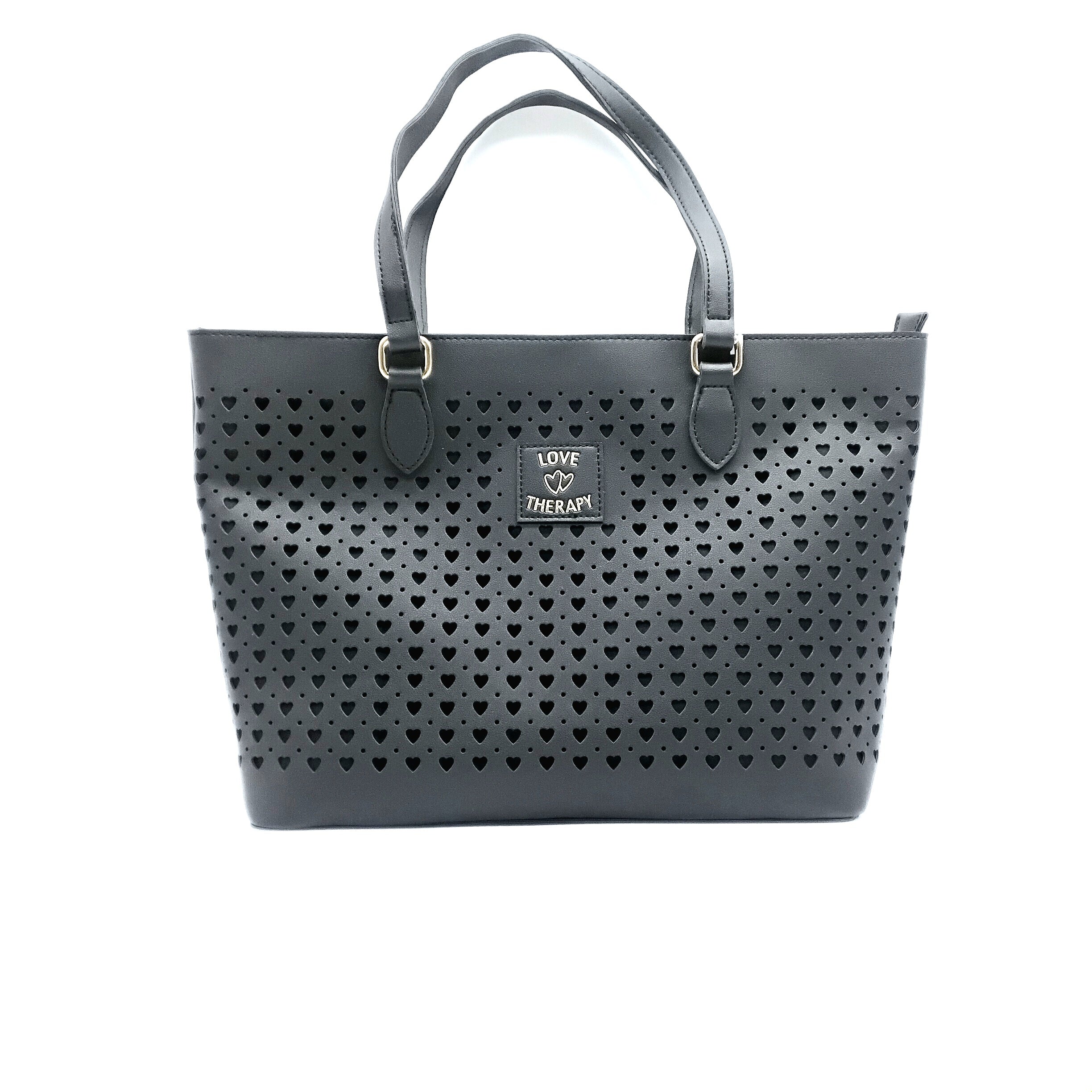 Borsa nera con cuori taglia L.