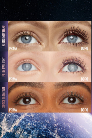 Effetto ciglia senza limiti! Il mascara Ciglia Sensazionali Sky High dona volume pieno e lunghezza intensa, grazie allo scovolino flessibile che avvolge le ciglia dalle radici alle punte. Formula infusa con estratto di bambù per ciglia più forti. Disponibile anche in versione "waterproof" e in varie tonalità di nero, blu, burgundy haze, plum e anche glitterata!