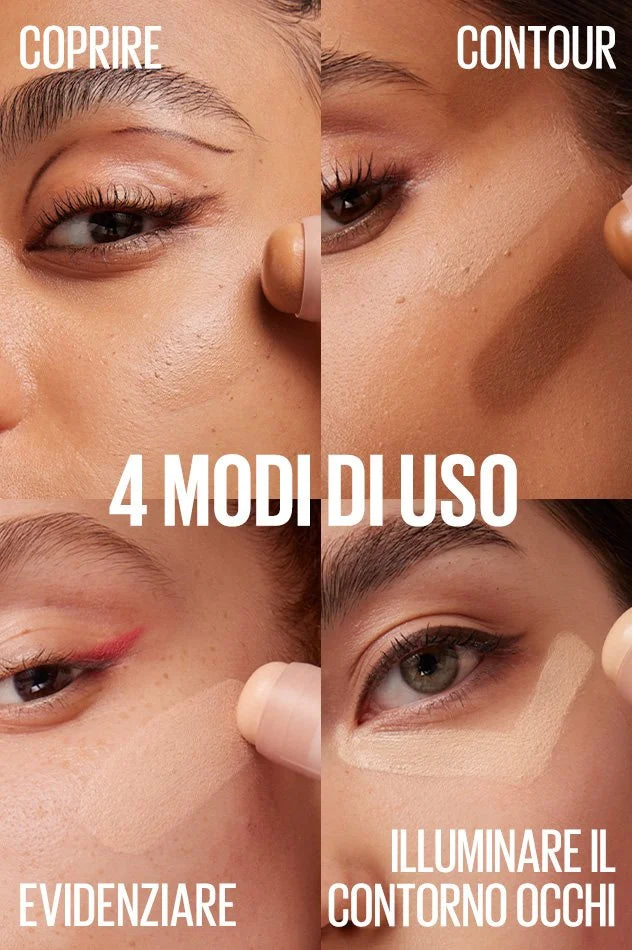 Definisci ogni angolo del viso facilmente con una texture cremosa che copre, scolpisce ed illumina. Formula arricchita con olio di semi di mirtillo rosso. Basta applicare, sfumare ed il viso è scolpito! Disponibile in 4 tonalità.