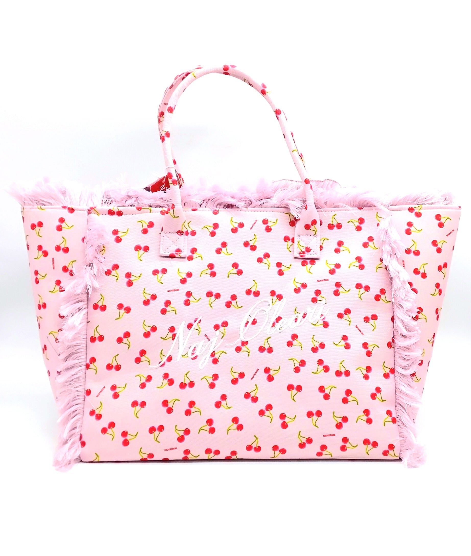 Borsa mare grande Naj-Oleari colore rosa con ciliegie. Modello L set SB/62097.