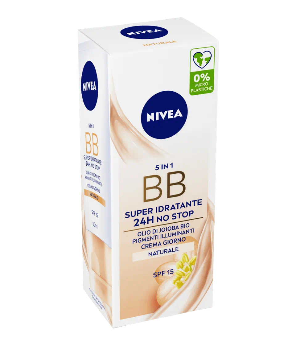 NIVEA ESSENTIALS BB Creme Super-Idratante Uniformante Dorata è una crema da giorno arricchita con pigmenti colorati. La sua formula 5in1, arricchita con Minerali, Olio di Jojoba Bio, Provitamina B5 e Pigmenti Luminosi, idrata, illumina, uniforma, corregge e protegge la pelle. La crema viso giorno copre le imperfezioni quali segni della fatica, occhiaie, macchie e rossori, illumina l'incarnato e idrata intensamente la pelle. Al contempo, il fattore di protezione solare SPF15 protegge la pelle del viso dai dannosi effetti dei raggi solari.