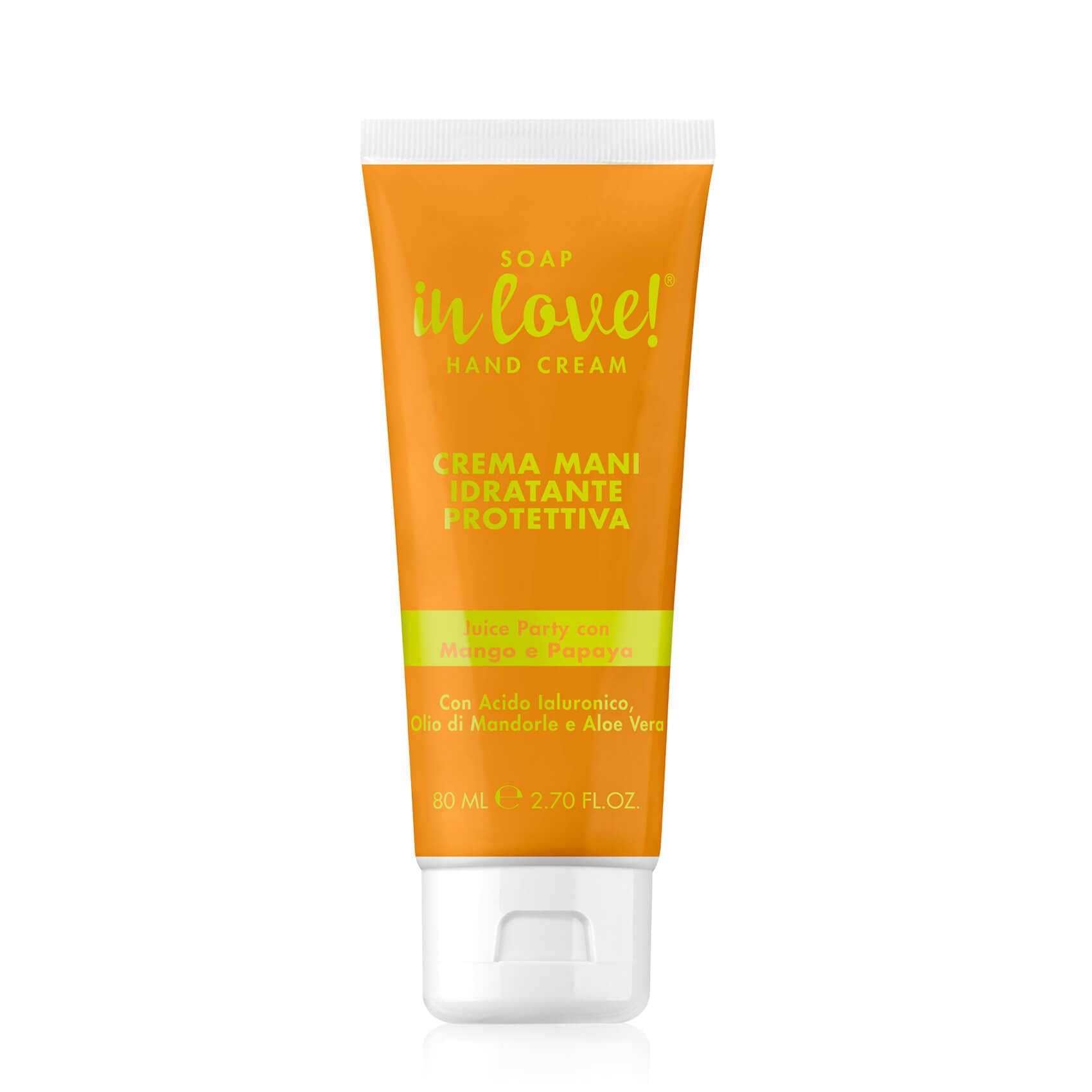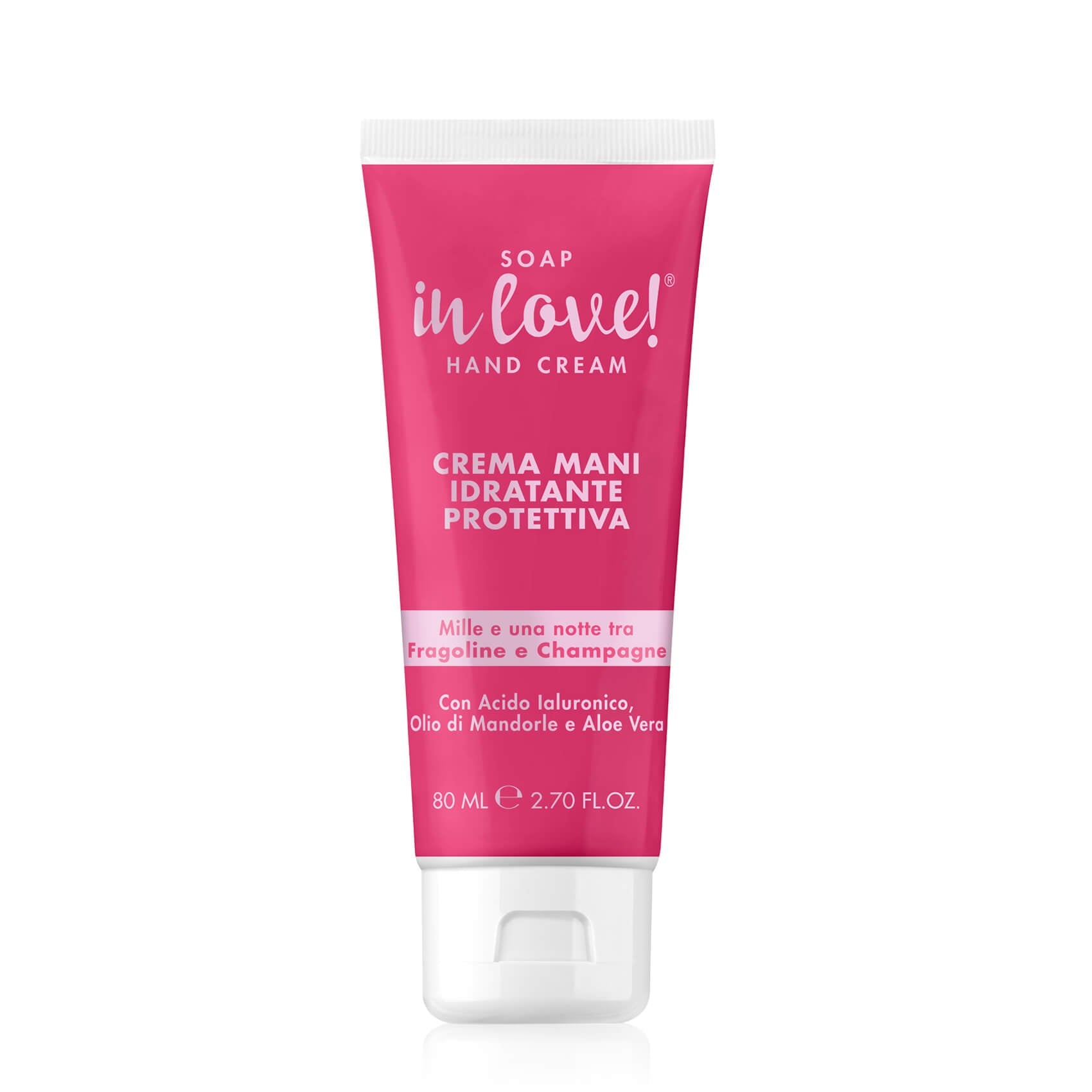 La Crema Mani Idratante SOAP IN LOVE!, dalle profumazioni intense ed inedite, è una crema mani fresca e a rapido assorbimento. Con l’apporto prezioso di Acido Ialuronico, Olio di Mandorle e Aloe Vera, le mani vengono avvolte da un piacevole velo emolliente che dona idratazione immediata e durevole senza ungere. La profumazione è inebriante e persistente, un vero viaggio olfattivo. SENZA AGGIUNTA DI COLORANTI E OLII MINERALI DERMATOLOGICAMENTE TESTATO CON INGREDIENTI DI ORIGINE NATURALE TUBO IN PLASTICA RICICLABILE