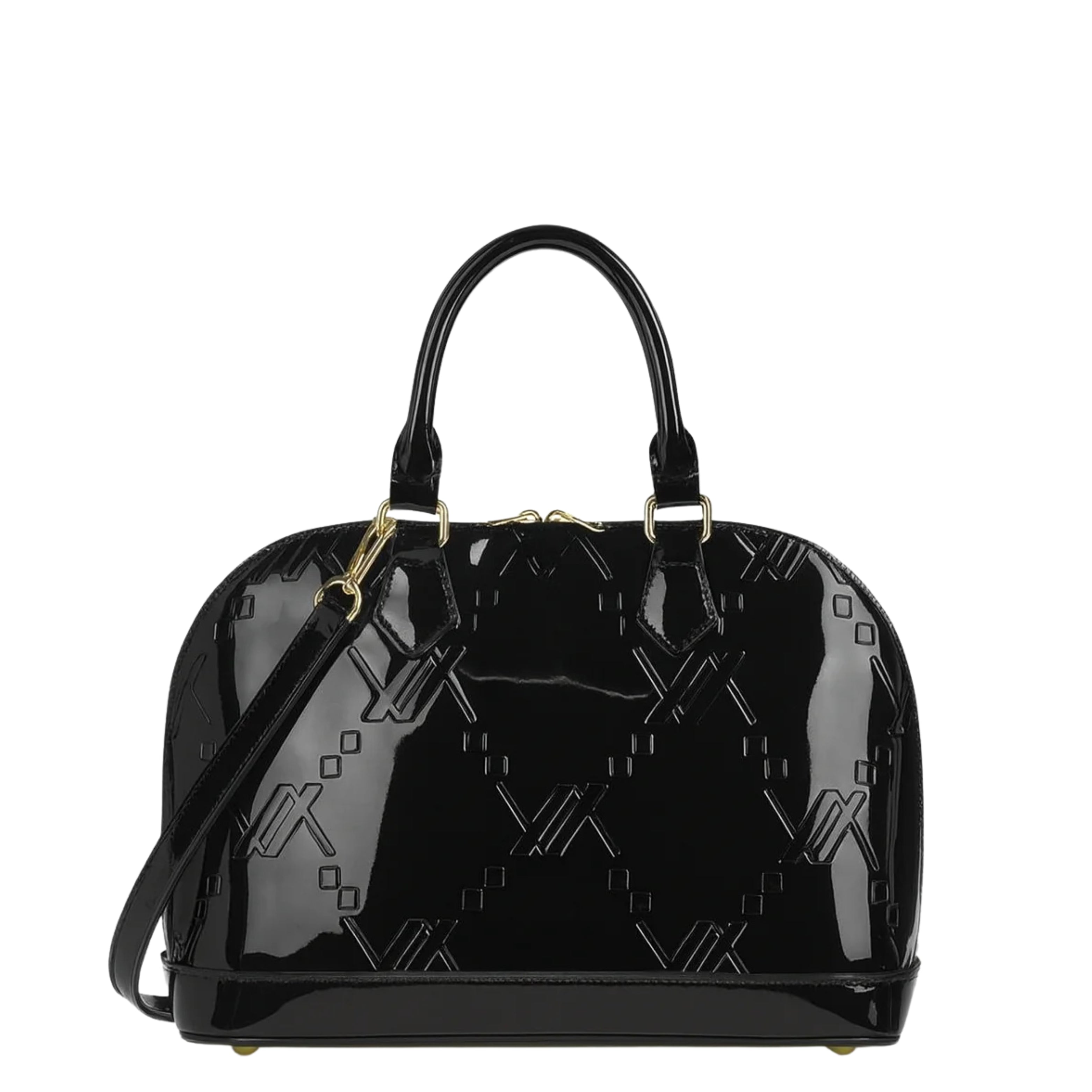 Borsa a mano in vernice lucida, elegante e versatile, perfetta per accompagnarti dalla mattina alla sera. Un accessorio dal design raffinato e contemporaneo, ideale sia per look da giorno che da sera. Capiente e ben organizzata, è dotata di tasche multifunzione, doppi manici e tracolla regolabile e removibile per offrirti praticità e stile in ogni occasione.