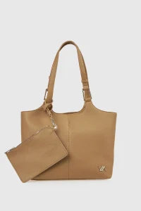 Realizzata in ecopelle con texture liscia, presenta due manici e una pochette esterna removibile.