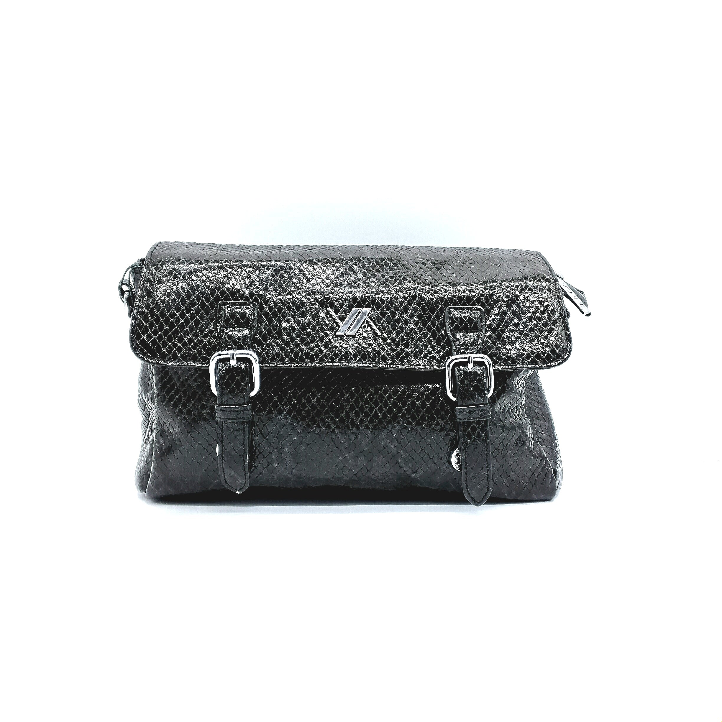 Borsa in ecopelle lucida con due cinture. Art. 16-0008132.