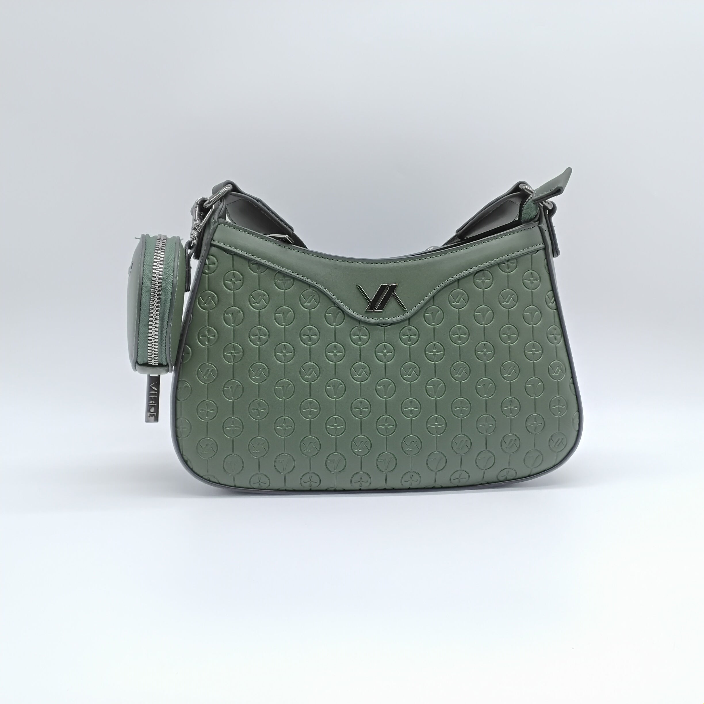 Borsa Verde Fashion con tracolla, parte frontale con stampa e porta monete.