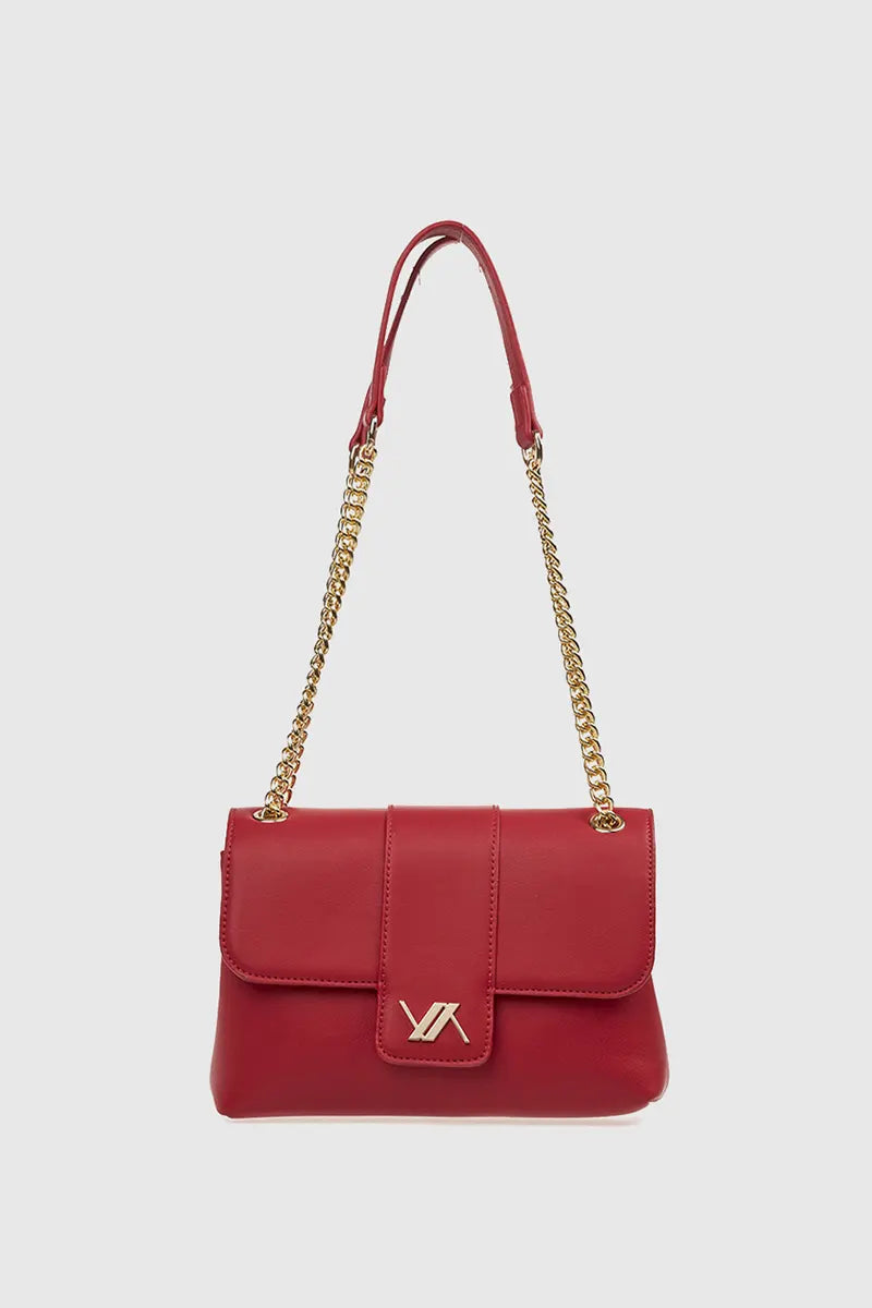La tracolla, un mix di catena ed ecopelle, aggiunge un tocco di glamour e versatilità, rendendola perfetta sia per il giorno che per la sera.