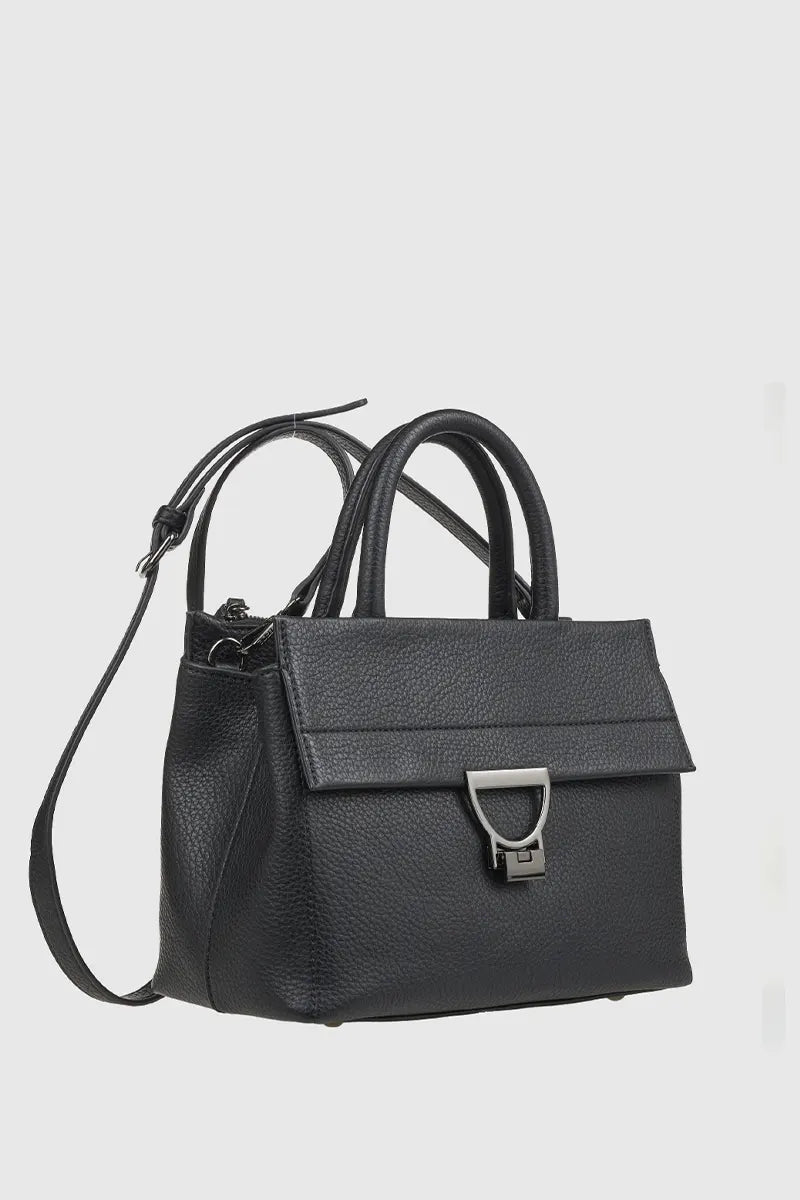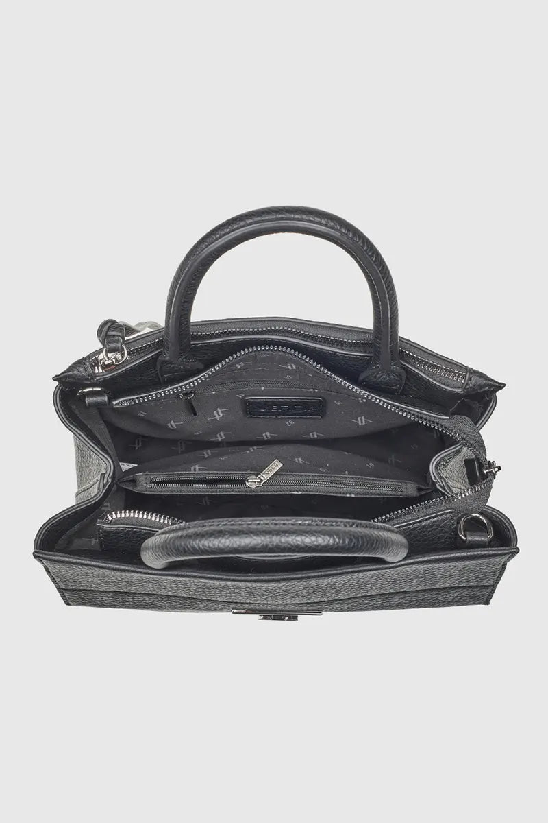 Questa mini tote è l’accessorio perfetto che unisce la sofisticatezza di una borsa strutturata alla praticità di una dimensione compatta. Realizzata in similpelle di prima qualità, offre un’organizzazione impeccabile: dispone di due scomparti principali con cerniera e uno scomparto intermedio interno zippato. L’interno è ulteriormente organizzato con tre tasche, inclusa una con cerniera. Esternamente, una doppia tasca con cerniera sul retro garantisce l’accesso rapido e sicuro agli essenziali. Con manici fissi per portarla a mano e una tracolla regolabile e staccabile, questa borsa è incredibilmente versatile, ideale per un look chic in ogni momento della giornata.