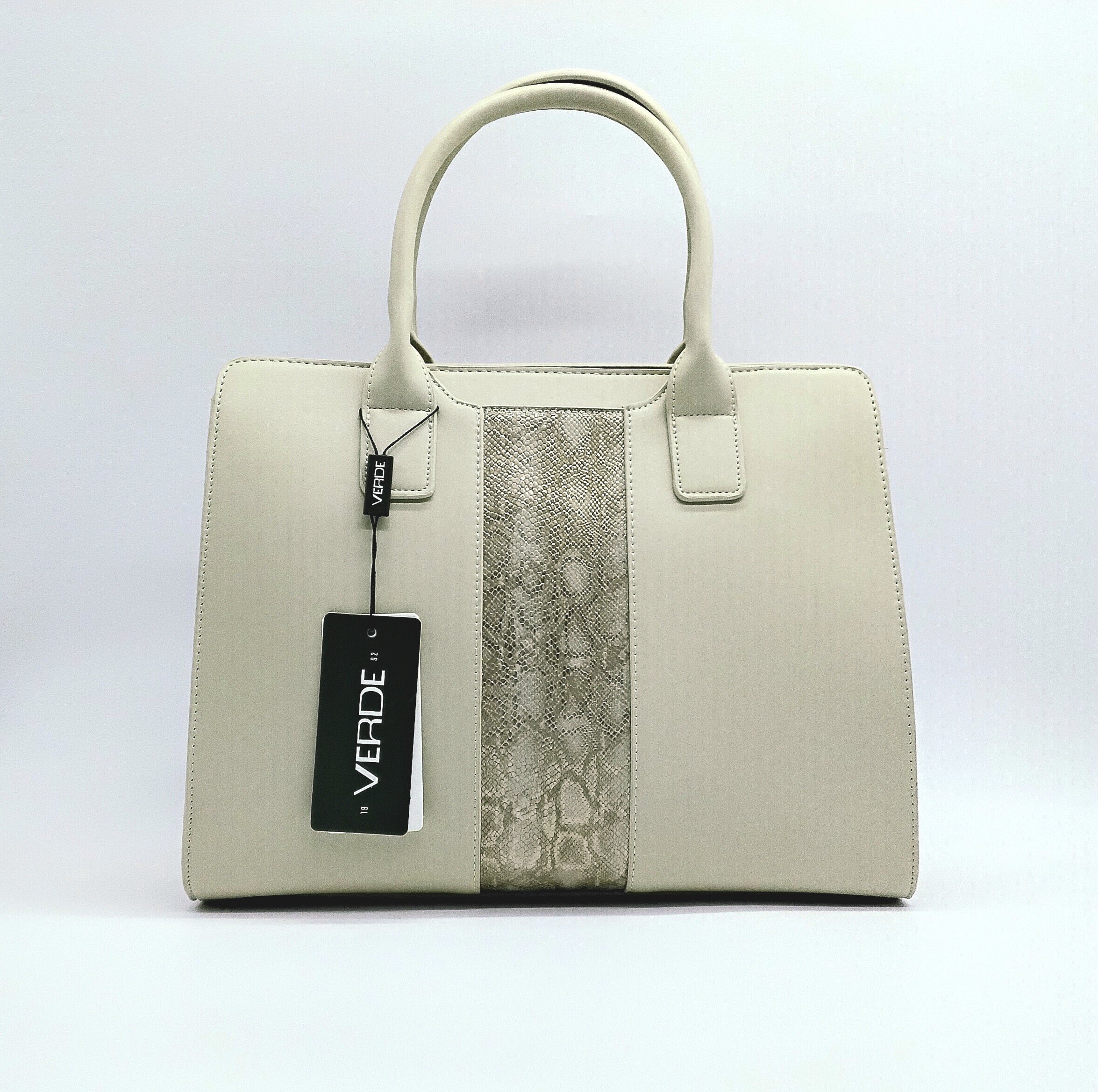 Borsa a mano grande con parte centrale pitonata. Colore: Beige.