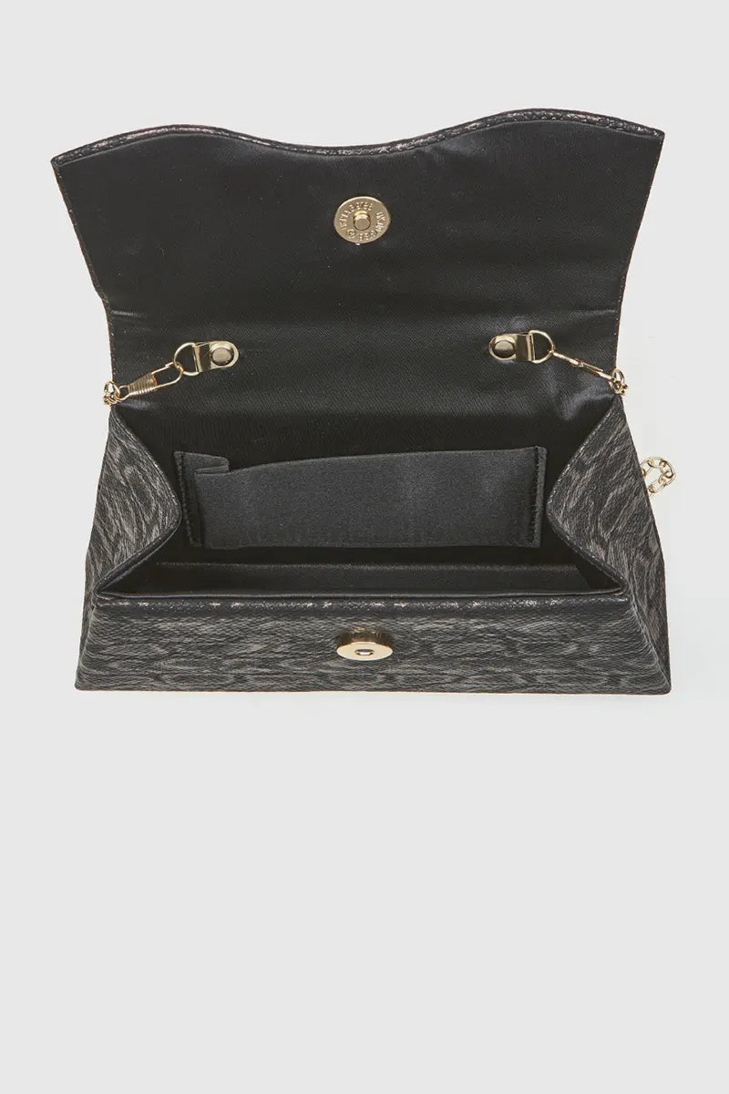 L'eleganza incontra l'eccentricità in questa pochette da donna Verde, l'accessorio perfetto per look di grande impatto. Realizzata in pelle sintetica con un'esclusiva stampa serpente in rilievo, si distingue per il suo manico rigido dorato in metallo, che aggiunge un tocco lussuoso e scultoreo. La patta con chiusura magnetica protegge l'interno foderato e dotato di una tasca per gli essenziali. Le dimensioni compatte e la pratica tracolla a catena in metallo staccabile offrono una grande flessibilità nel trasporto, rendendola ideale per distinguerti con classe nelle tue uscite serali.
