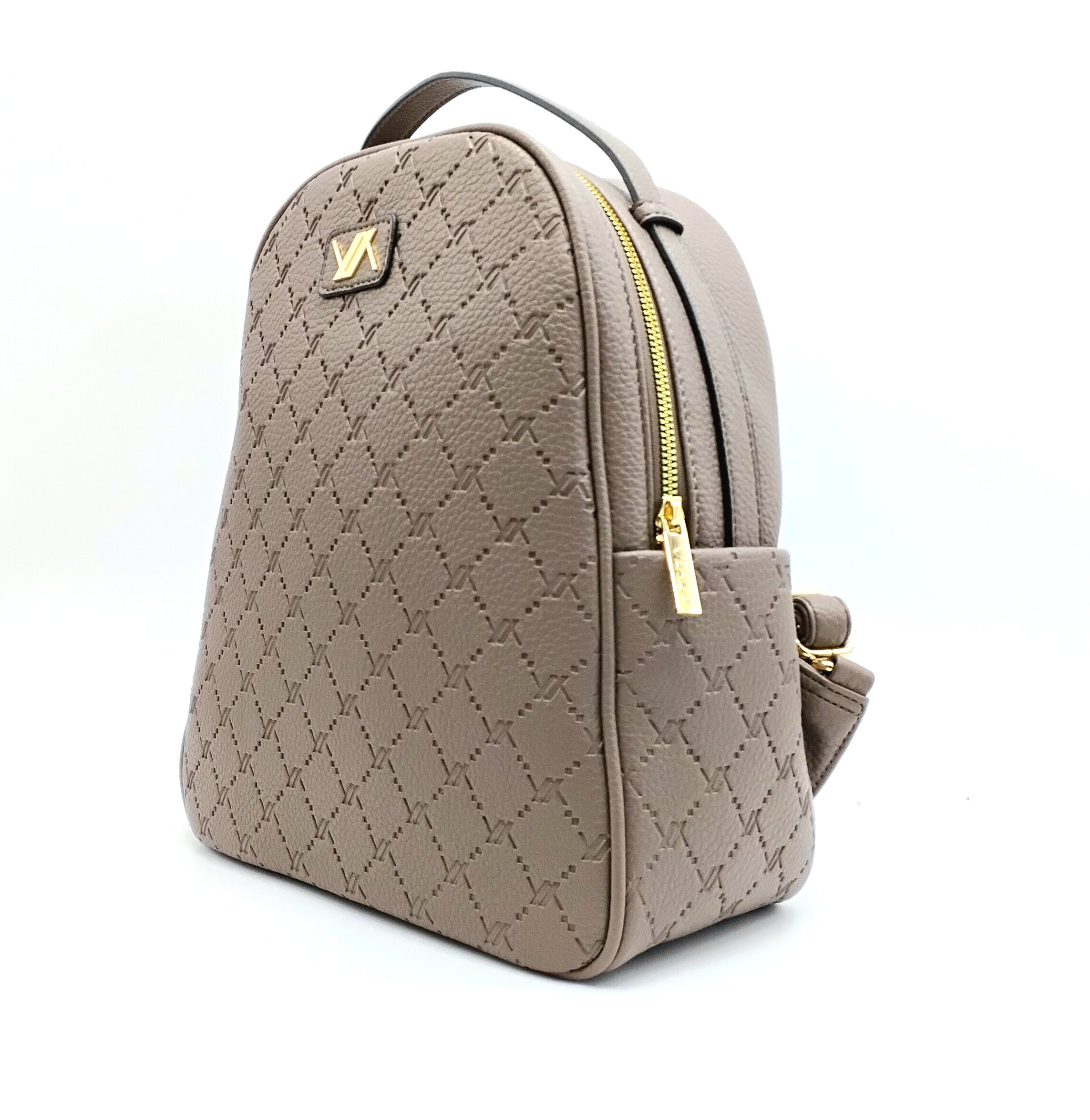Elegante e funzionale, questo zaino in ecopelle con motivo monogramma in rilievo unisce praticità quotidiana e lusso discreto. La forma arrotondata, il manico superiore e gli spallacci regolabili lo rendono perfetto dall’ufficio alle passeggiate in città.
